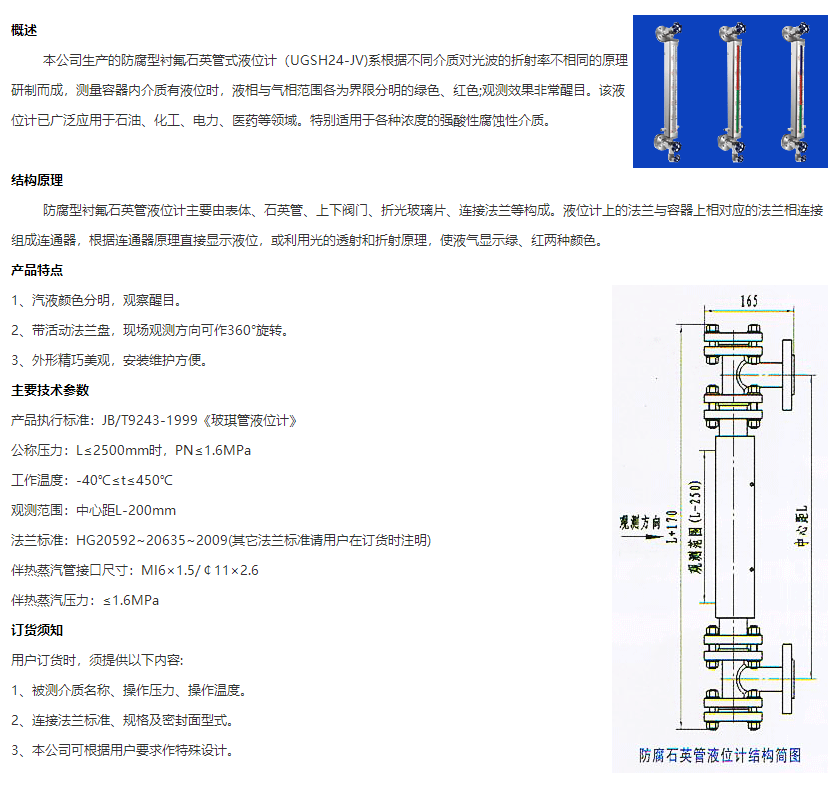 襯氟石英管式液位計